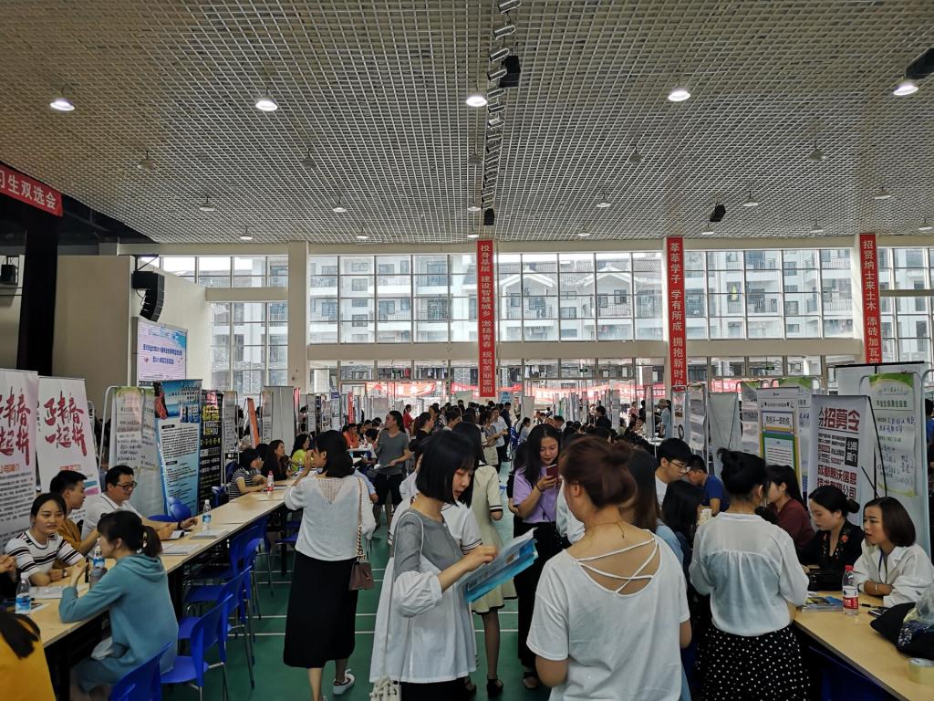 4月26日上午,2019届毕业生春季双选会暨2020届实习双选会在都江堰校区体育馆隆重举行。尽管天气炎热,但仍挡不住大家前来参会的热情。此次双选会吸引了百余家公司的参展,近千名应届毕业生的热情参与。宏大的招聘场面,众多的用人岗位和毕业生的双向选择,为这个本就炎热的初夏更是增添了几分火热。