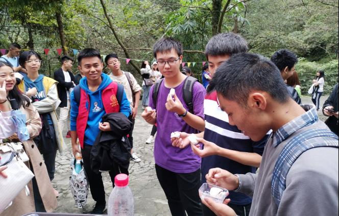 此次登高活动在登山的途中设有三个游戏环节,分别为对诗、吃重阳糕和折花拍视频。对诗的过程中同学们积极参与抢答与重阳节有关的诗词,比赛吃重阳糕的同学们也是拼尽全力争夺前列。最后的折花拍视频,参与的同学们细心折完菊花后,都拍摄了一段小视频与亲人们分享。全程同学们欢笑不断,气氛十分欢快。