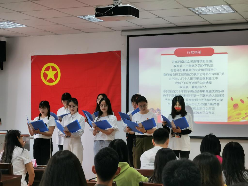 “我们是五月的花海,用青春拥抱时代;我们是初生的太阳,用生命点燃未来……”同学们用齐整洪亮的声音,开启了本次的团日活动。活动围绕“争做‘川农大精神’新传人”的主题,结合理论学习、经历分享和文艺表演等形式深度解读了“爱国敬业、艰苦奋斗、团结拼搏、求实创新”的农大精神内涵,开展了形式多样、内容丰富的主题团日活动。