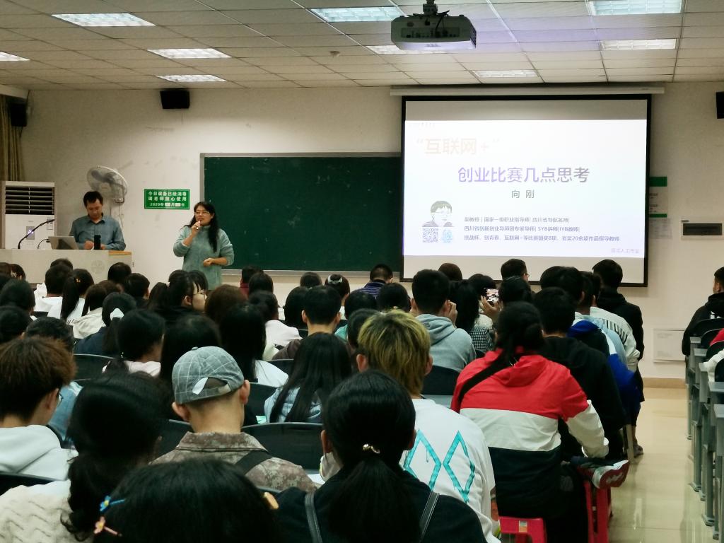 在2A103教室举办了创新创业赛事分享交流会。学院邀请到了向刚副教授进行现场指导,学院党委副书记庄萍萍、部分指导教师和同学共计180余人参加了本次分享交流会。交流会由庄萍萍主持。