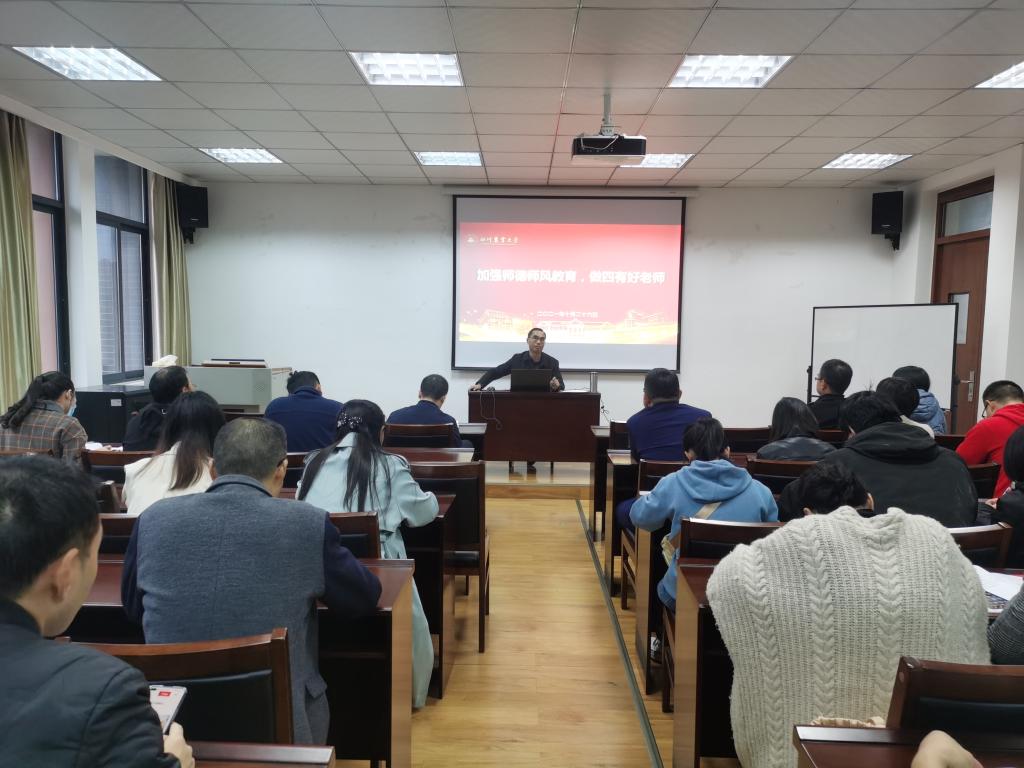 10月26日下午4:20在2C405会议室,学院党委书记申琼为全院教职工作题为《加强师德师风教育,做“四有”好老师》的专题报告。
