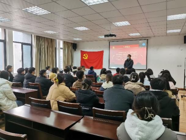 首先,吴红玉宣读了2022年秋季学期学院中共预备党员发展基本情况,并带领大家齐唱《国际歌》,歌声在教室响起,同时也把歌曲的深刻意义渗进了每一位党员的心里。
