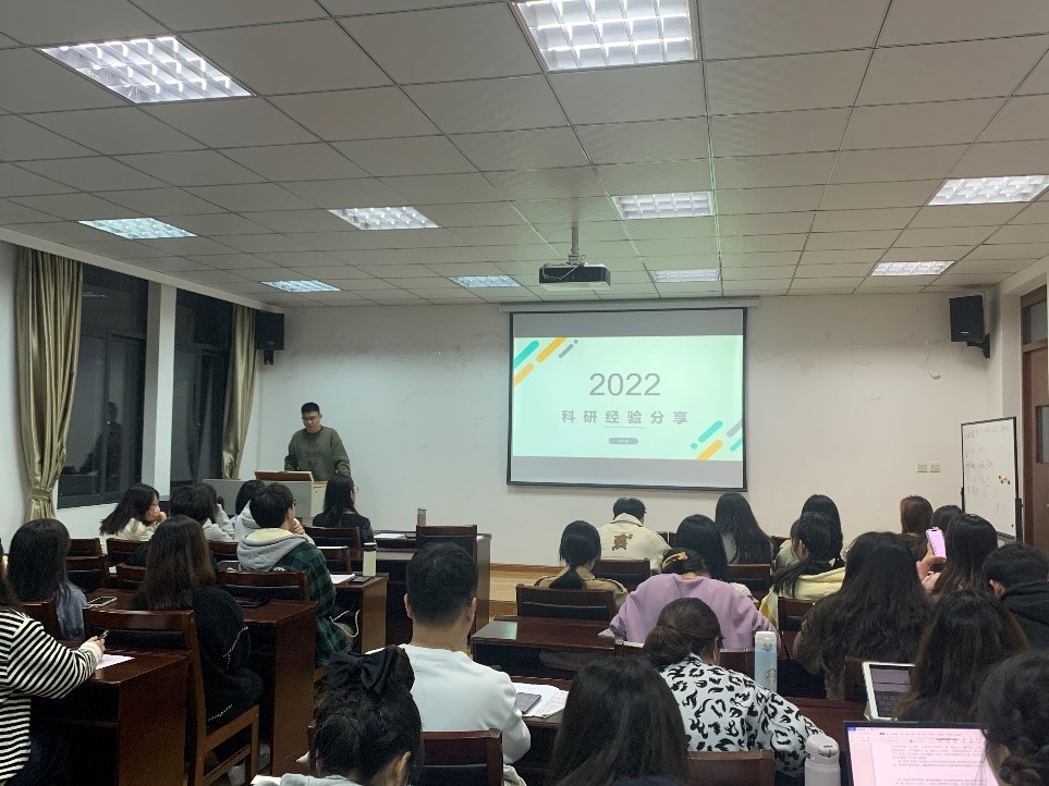 代佳池以自己在SCI/SSCI论文投稿过程中总结的经验教训进行了分享,认为投稿是论文成功发表的重要一步,并向同学们讲述了如何确定投稿期刊,如何准备投稿材料以及如何在线投稿和文章审理等内容。赵宇彤以选题来源、如何有效查找文献包括文献查找要求、文献的选取等内容、文献阅读的技巧,包括阅读文献的全过程,以及判断文献应该需要精读还是泛读、撰写英文论文的方法,原创类型文章结构进行了讲解;黄依澄就一年以来的科研生活经验进行分享,他告诉同学们论文选题大方向来源于导师,小方向应根据个人兴趣进行选择,同时告诫同学们在科研的路上应养成独立思考和及时行动的良好习惯。