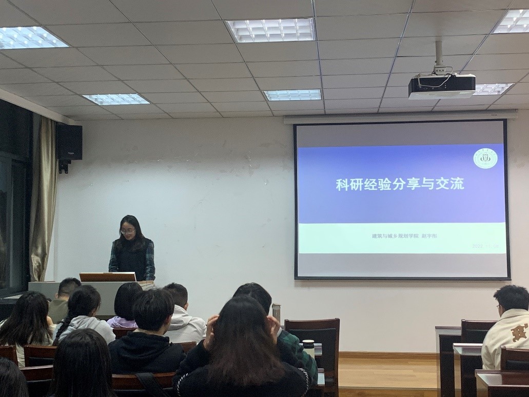 为进一步加强研究生对学术研究的前沿认知,更好地把握研究方向。11月8日晚,学院研究生会在2C405开展了以“以研为路,筑梦建城”为主题的科研经验交流与学术知识分享会。本次会议邀请了2020级研究生代佳池、赵宇彤,2021级研究生黄依澄作为优秀研究生代表进行分享。