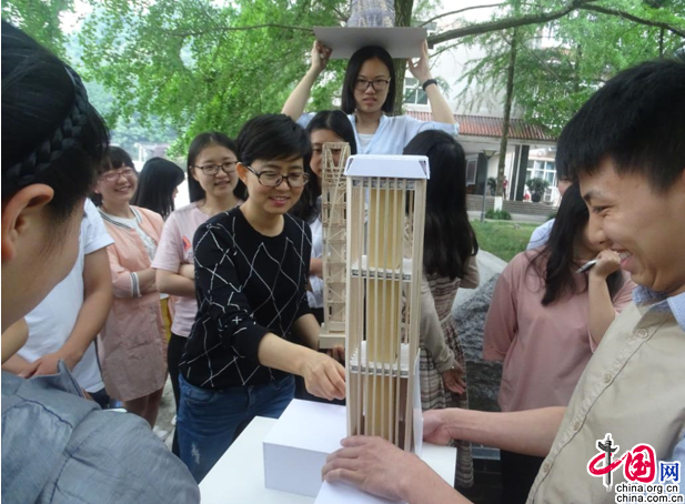 “我学院地处都江堰,拥有得天独厚的区位优势和特色古建资源,通过多年教学实践的探索,形成了比较完善的融入都江堰古建筑特色的教学内容。”据张凌青介绍,参与到古建保护的学子涵盖了该学院所有专业,各专业教师结合自身特点,在教学过程中穿插、融合与都江堰建筑紧密结合的特色内容,包括《建筑设计Ⅰ》《建筑设计Ⅱ》《中国建筑史》《建筑初步》等多门课程。