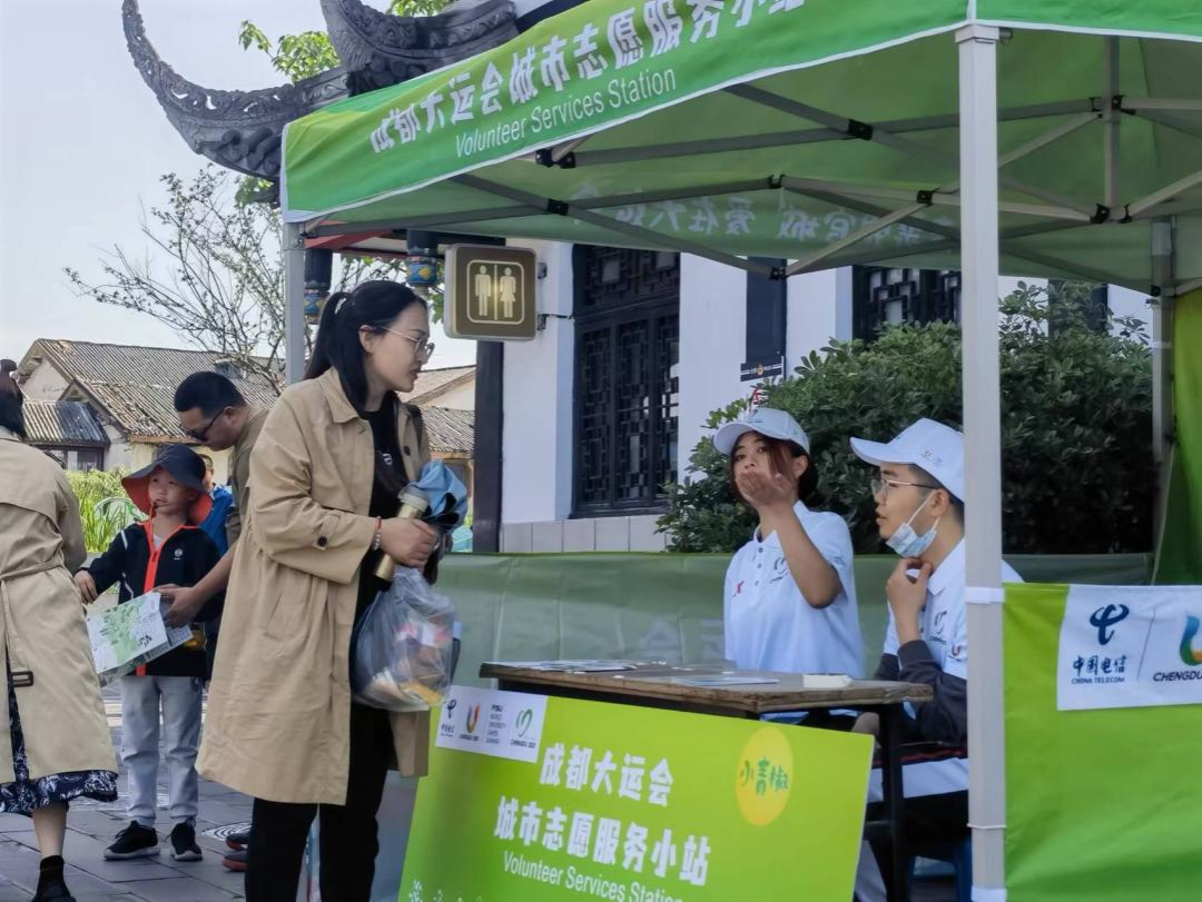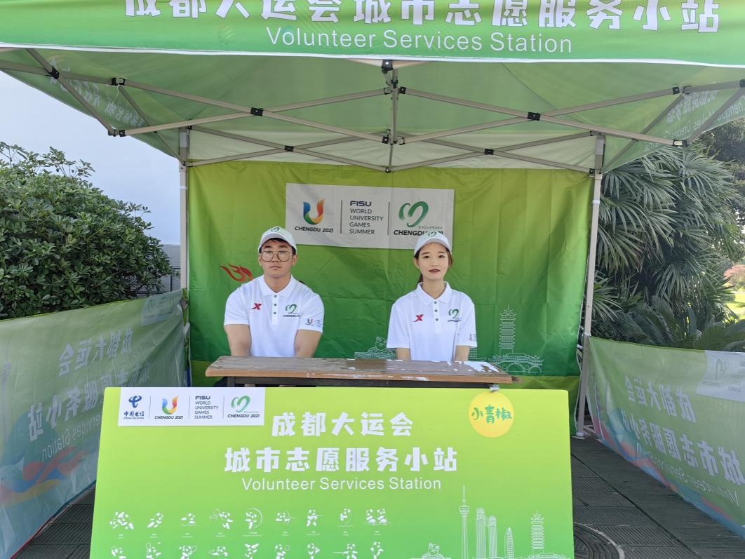 图为大运会志愿服务小站志愿者