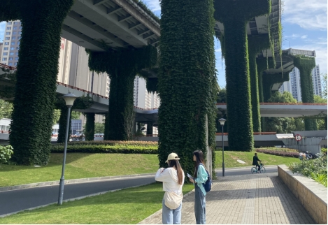 学生在双桥子立交进行实地调研场景(袁韵梅、骆思睿等供图)