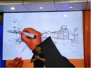 在4101报告厅开展了“设计/手绘软件交流分享”专题讲座。风暴手绘团队刘云老师担任主讲人。同时,风暴手绘创始人、青年手绘艺术家、风暴建景有限责任公司设计总监孙超老师作现场手绘展示。建筑学和城乡规划专业大一、大二全体同学参加了本次讲座。