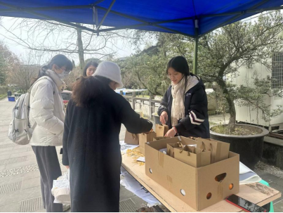 在活动中心背面设立“情暖护航”加油点,特别准备了一战“橙”硕——脐橙、金杏报捷——银杏叶书签的“暖心加油包”。精心准备的“暖心加油包”,传递着来自学院和师生们沉甸甸的祝福,期望美好的心意如冬日暖阳一般,温暖护航着考研征途上的奋进青年。值班的同学们带着微笑,将这份“暖心加油包”交到前来的考研学子手中,一声声考研祝福传递着朴实而真挚的祝愿。
