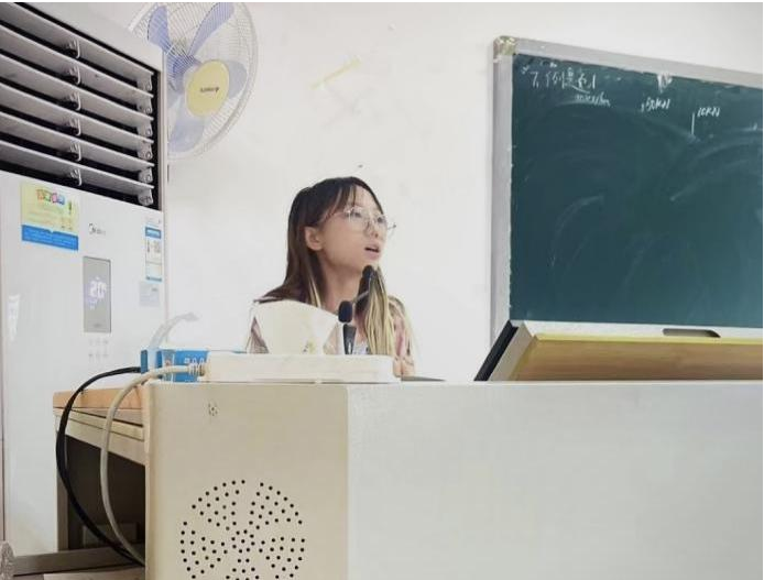 张力文主要介绍班委组织架构和学校组织。她通过生动有趣的语言与同学们亲切互动,活跃现场氛围。她结合自己的班委任职经历,深入浅出地介绍怎样构建一个优秀的班集体。此外,她通过分享优秀学长学姐的荣誉,为同学们树立前进的榜样。