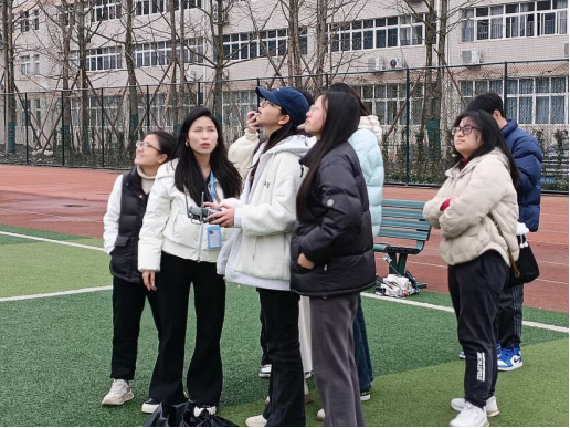 理论课程结束后,唐磊老师带领同学们进入实践环节。他首先展示了无人机拍摄的二维正射影像和三维实景模型,随后与同行的两位老师一同在操场进行飞行演示,并指导感兴趣的同学体验无人机操作。现场气氛热烈,同学们踊跃围观,积极提问,三位老师共同指导,现场答疑。活动结束后,2024级建筑学专业的同学感慨:"这次实践让我直观感受到了科技的魅力,没想到无人机技术已经如此深入地应用于我们的日常生活。"