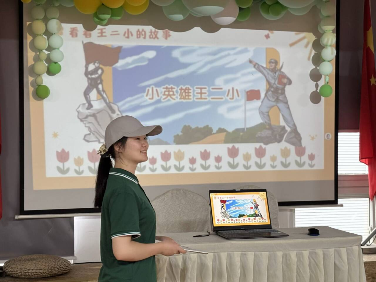 红色基因融入推普,语言文化同频共振。特别开设的红色故事课堂成为本次推普实践亮点,通过语言生动演绎,将红色传承与普通话能力提升有机结合。团队成员带领孩子们深情演绎《半条棉被》、《英雄王二小》等经典故事,通过绘声绘色的讲述和情境再现,将动人的红色篇章融入到语言教学中。孩子们不仅被故事深深吸引,更在聆听与实践中深化了对红色革命精神的理解,厚植了爱国情怀,其普通话的听、说、演绎等综合能力也得到了有效锻炼和提升。
