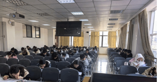 为还原真实考试场景,保障模拟效果,活动前期工作人员进行了充分准备:精心筛选贴合真题难度的模拟试卷与标准听力音频,规范印制答题卡,制作精准计时的考试倒计时视频;严格参照全国大学英语四六级考试的时间安排、监考规范等要求划分考场、配备监考人员,全力为学生打造沉浸式备考体验,助力大家提前熟悉考试节奏、适应考场氛围。