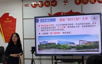 图为甘露教授介绍学院发展历程及专业建设概况