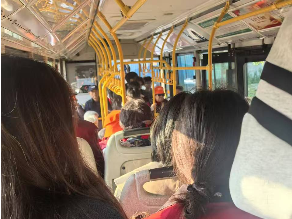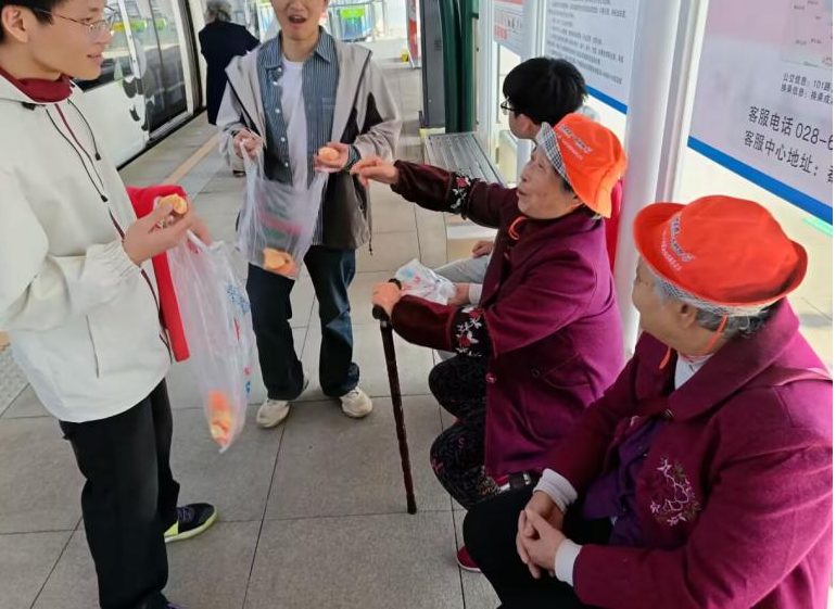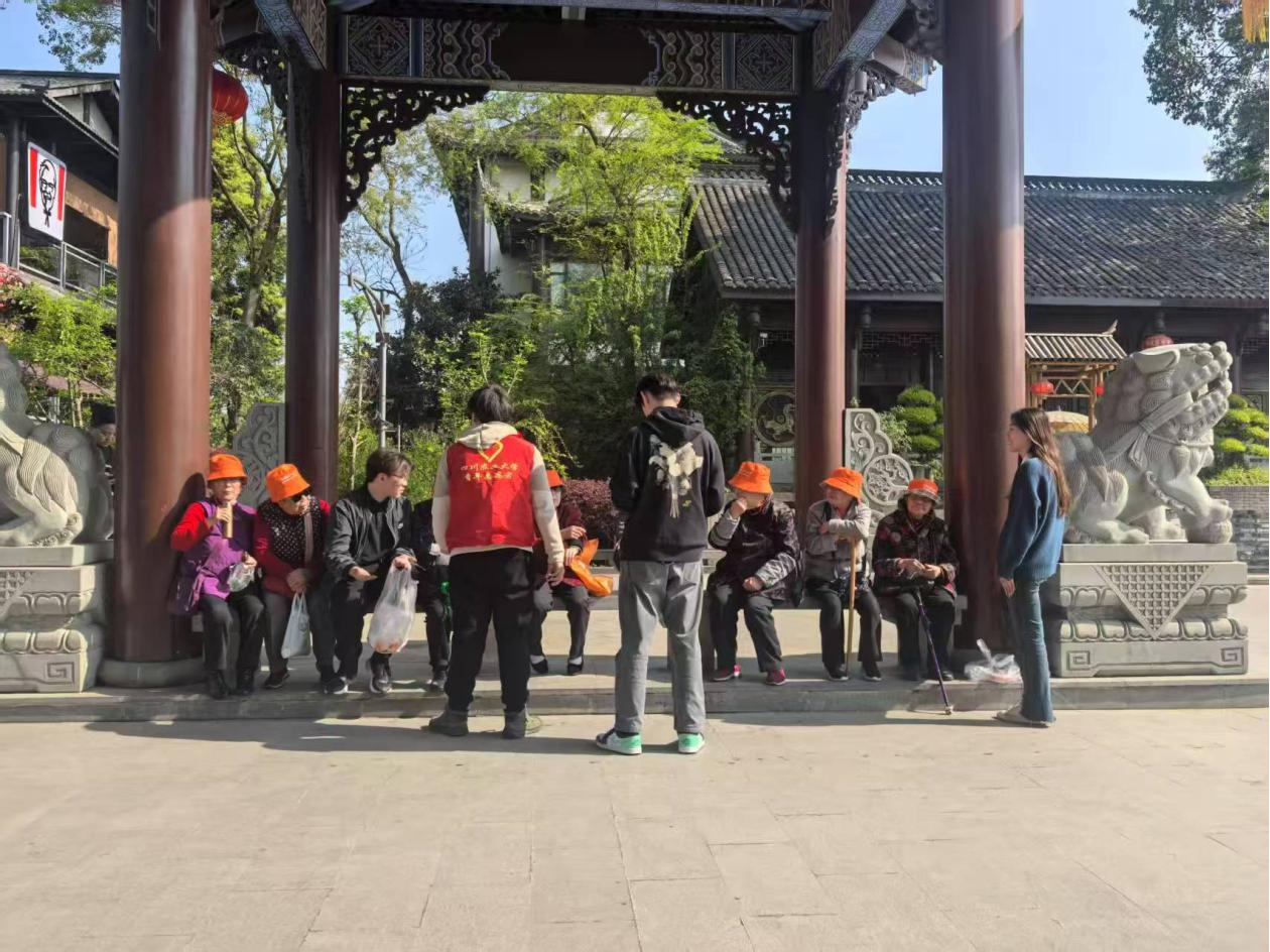 清晨8点,阳光倾洒。20名学生志愿者准时来到养老院,在工作人员调配下,迅速与老人结成一对一陪伴小组。他们要带老人从养老院前往11公里外的青城山景区,为此精心规划了公交、轨道结合的出行方式,比常规出行碳排放减少约38%。