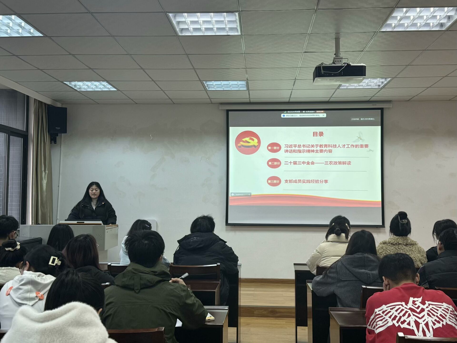 研究生第一党支部举办了以“学习宣传贯彻党的二十届三中全会精神—乡村振兴实践及经验分享”为主题的党组织生活会,参会人员包括支部全体党员和入党积极分子。