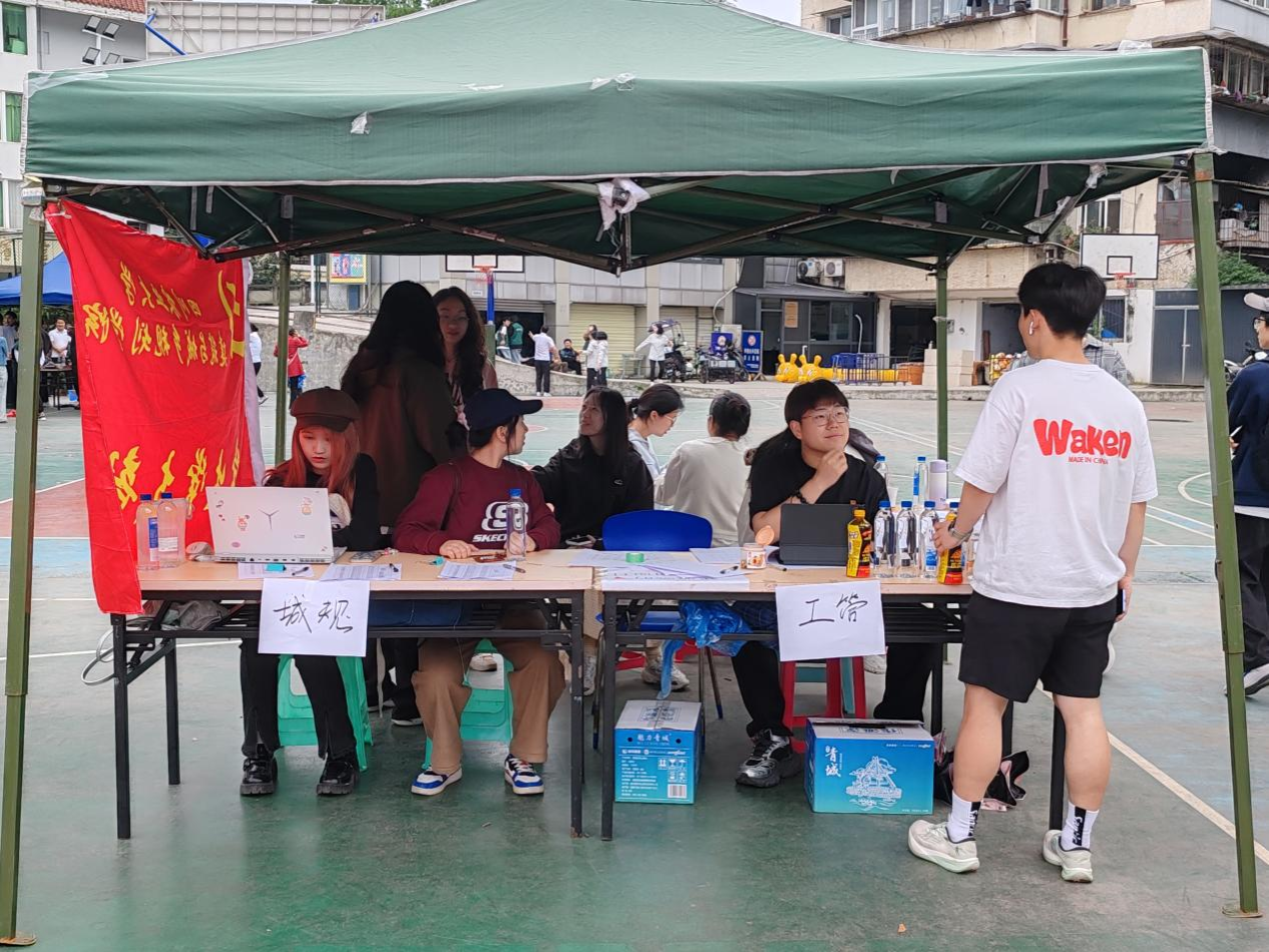 图为学生党支部同学布置服务点