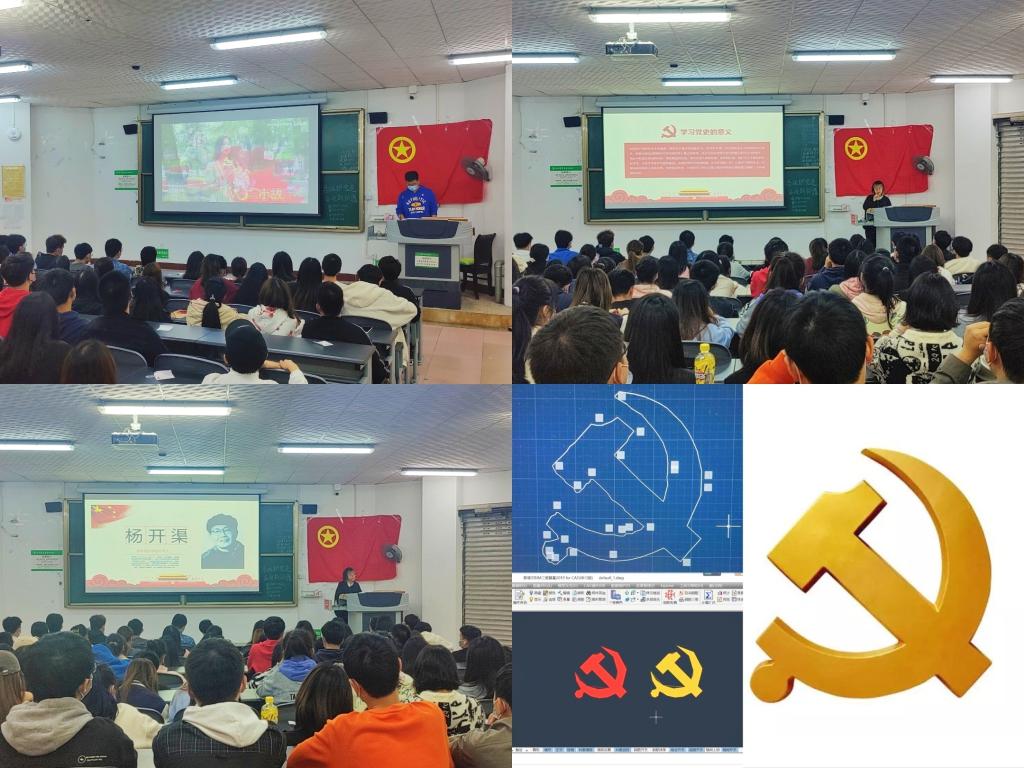 以主题团课为抓手,引导青年团员深刻感悟新时代党和国家事业发展的伟大成就。组织观看青马学员讲党史、青春故事;邀请校青马班优秀学员黄一昕讲解党史;联合学生会外联部开展以“建团百年”为主题的海报绘制活动,积极宣传活动鼓励成员参与活动;倡导自主学习,将团日活动与专业课相结合,借助斯维尔BIM三维算量2019forCAD绘制党徽。