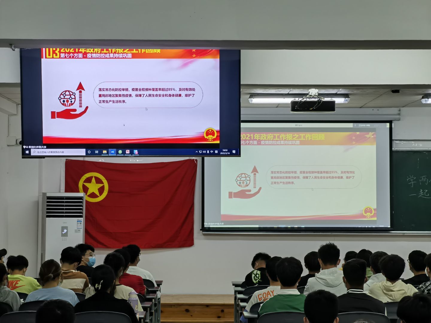 在学两会精神环节,支部通过以模拟新闻播报并连线“前方记者”的新形式,让同学们快速了解到这次两会的相关知识。同时还邀请到了第十三届全国人大代表,四川轻化工大学科化学与环境工程学院符宇航副院长线上为大家分享感悟。通过分享,同学们更加了解两会的内容及其重要性,更加坚定走人民民主专政的道路,始终坚持党的领导。此外,同学们还就“考研还是就业”这一两会热点话题展开了激烈讨论,现场激情四溢,掌声雷动。