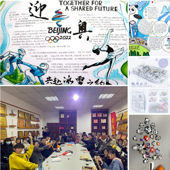 团支部成员结合有关专业特色,一同学习文章《北京冬奥设计里的中国印记》中关于冬奥logo,冬奥吉祥物的设计思维及理念,在娓娓绵长,悦耳动人的《一起向未来》主题曲歌声后,用手工,手绘,软件等形式匠造或绘制吉祥物、手抄报等,与冬奥共进,绘华美篇章。