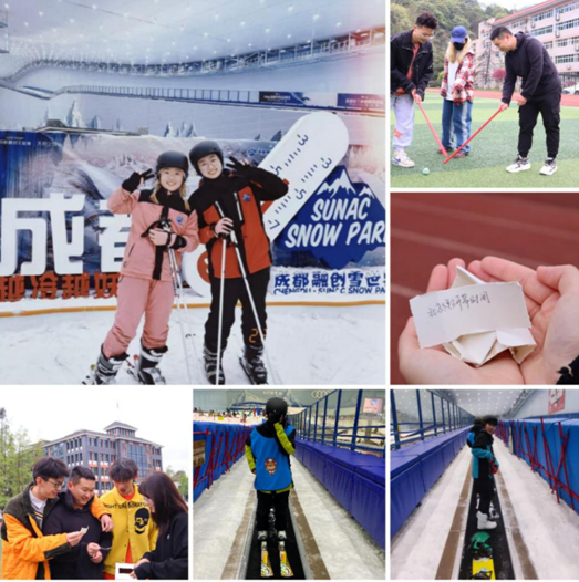 都江堰校区绿茵球场上,在院学生会体育部的组织下,各团支部成员通过小游戏“冬奥冻冻”与模拟冬奥项目“冰球对抗”,学习冬奥运动员的体育精神,亲身体验冰雪运动项目,享受冰雪运动的乐趣。以寓教于乐的形式,让奥运健儿奋勇争先的拼搏精神为青春注入前进动力。另外,我们还邀请了玩偶姐姐