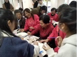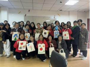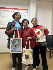 图为奶奶们与DIY帆布包合影