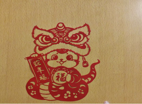 活动期间,同学们积极参与,热情高涨。过程中,同学们不仅学习了剪纸技艺,还了解了剪纸艺术的历史和文化内涵。剪纸作品种类繁多,风格各异。有的作品以文字为主,将“福”、“春”等吉祥文字巧妙融入剪纸图案中,寓意着新春佳节阖家幸福、万事如意;有的作品则以蛇形图案为主,将蛇这一象征着吉祥、长寿的动物形象融入剪纸中,展现了同学们对美好生活的向往。