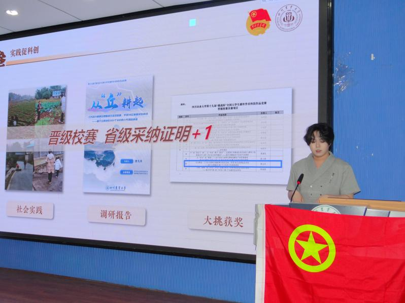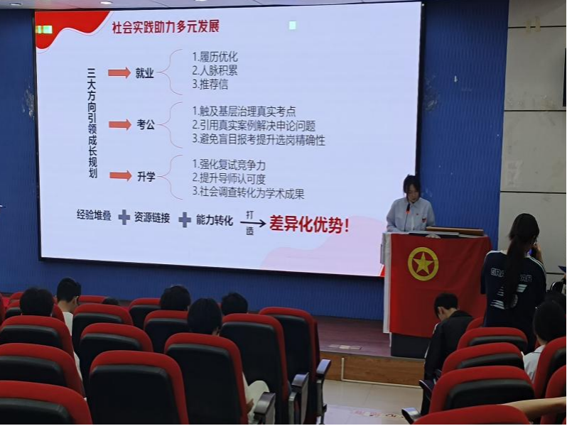 随后,工程管理专业2022级学生刘政君,通过图文并茂的实践经历展示,分享了他在多次社会实践中的所见所悟,为在场同学提供了项目选题与实施的新视角。