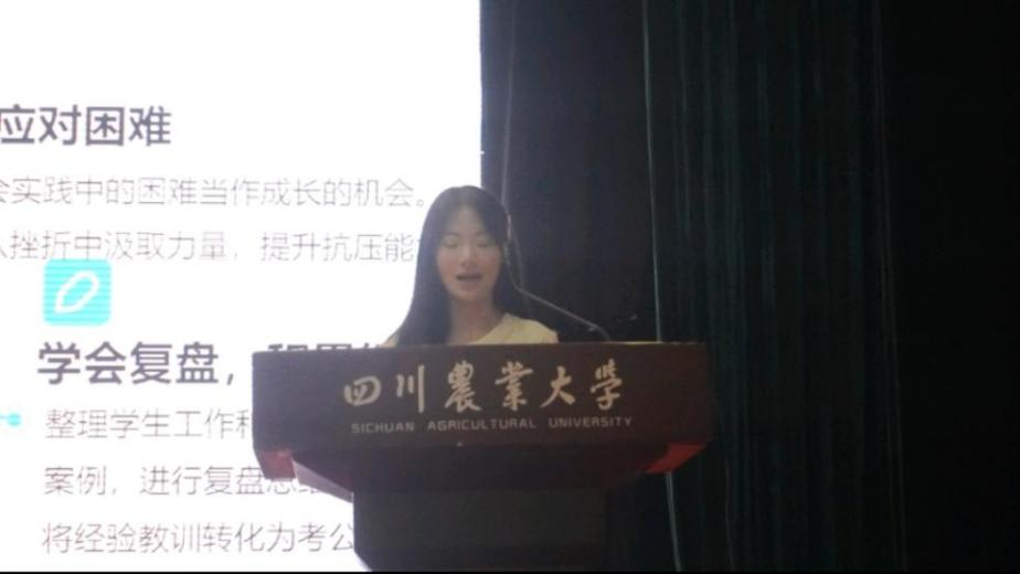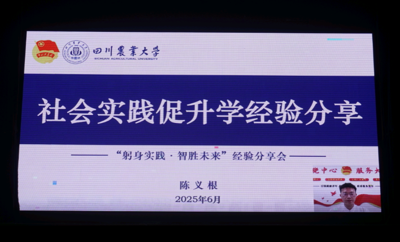 陈义根学长因参加省青马工程未能到场,特录制视频分享道:社会实践与科创赛事成果不仅让他在推免中脱颖而出,更助力其从原计划的研支团路径转向成绩加分保研,最终成功推免至西北农林科技大学。他在视频中强调,实践与赛事的成果积累能显著提高升学竞争力,是推免考核中不容忽视的一环。