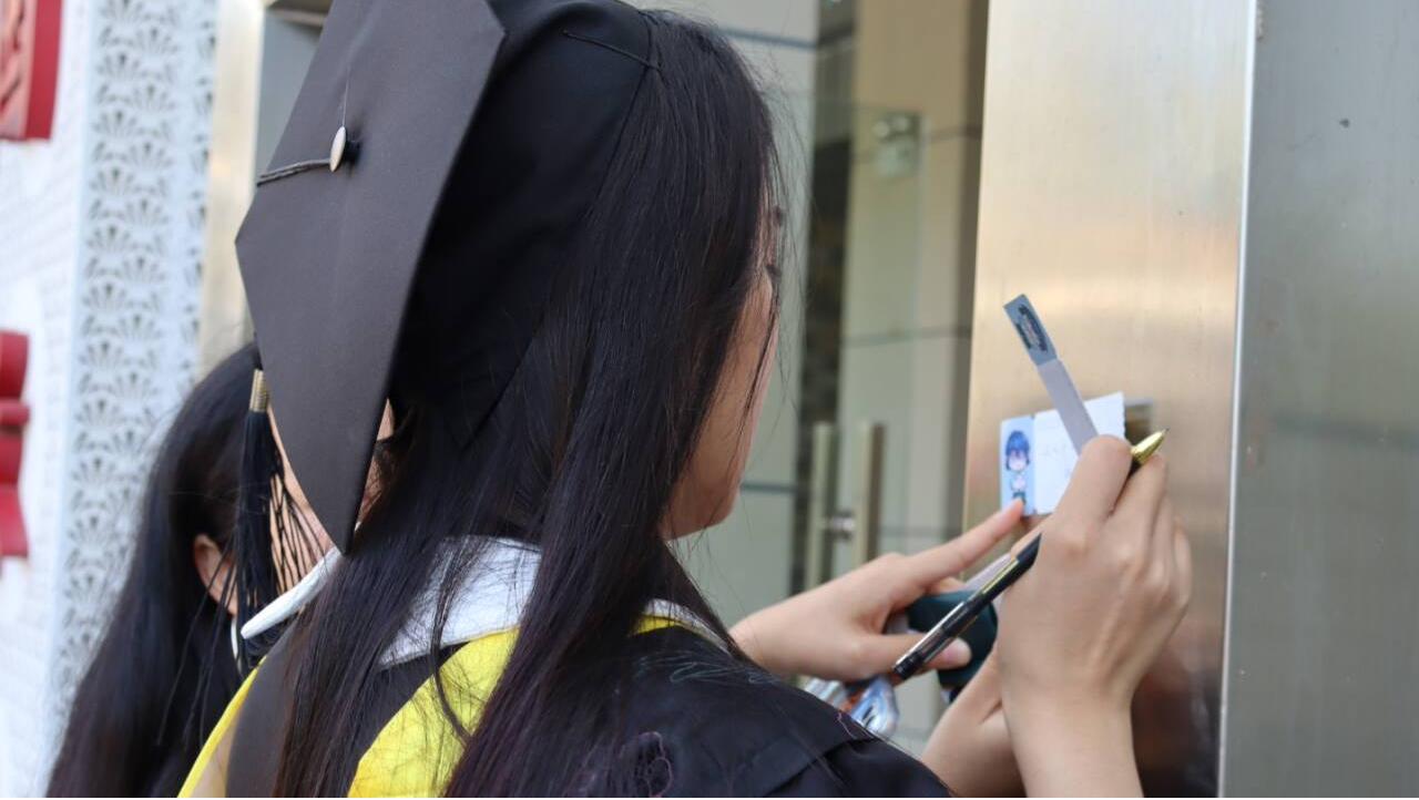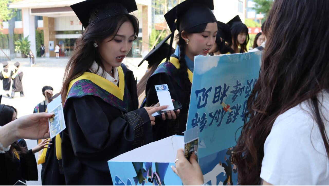 在栀子花开的毕业时节,这场以明信片为载体的温情活动拉开帷幕。6月11日,文娱部成员将融媒体中心精心设计的专属明信片送至毕业生手中。素雅卡片上印刻着校园地标与院系徽章,背面留白处静待书写青春箴言。