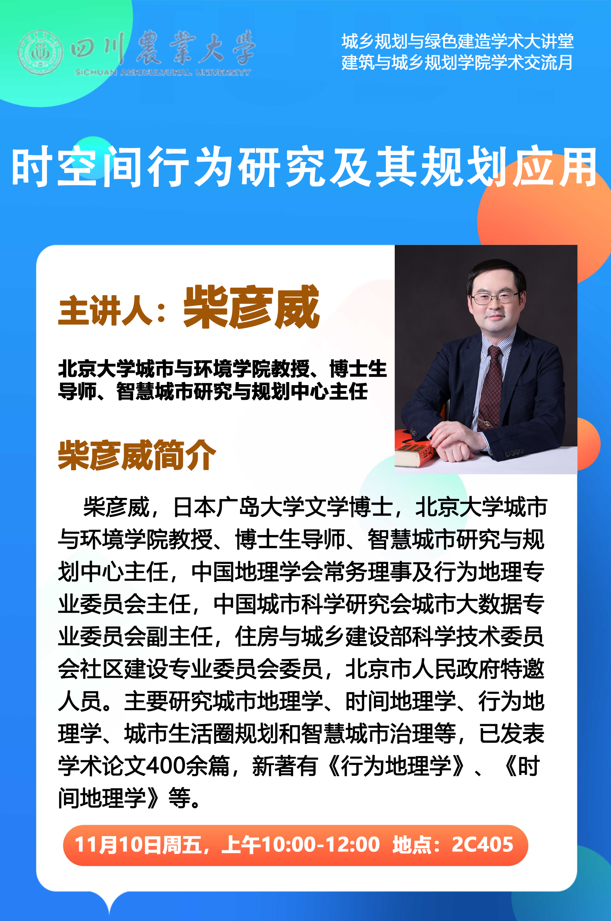 主讲人:柴彦威 北京大学城市与环境学院教授、博士生导师、智慧城市研究与规划中心主任